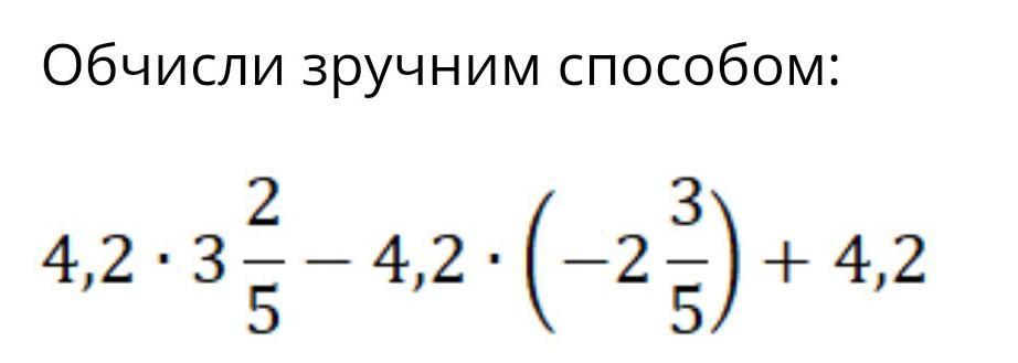 4,2×3 2/5 -4,2×(-2 3/5)+4,2= 21/5×17/5-21/5×(- 13/5)+21/5= 357/25+273/25×21/5=147/5