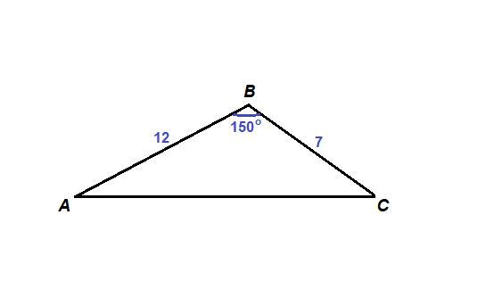 АВ = 12 см, ВС = 7 см, ∠В = 150°.