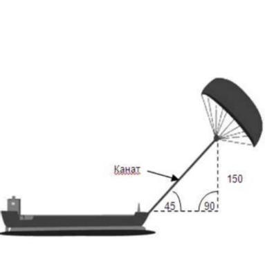 Якщо на палубі корабля швидкість вітру дорівнює 24 км/год, а на висоті 150 метрів він на 25% більше, то швидкість вітру на кайті можна оцінити таким чином: