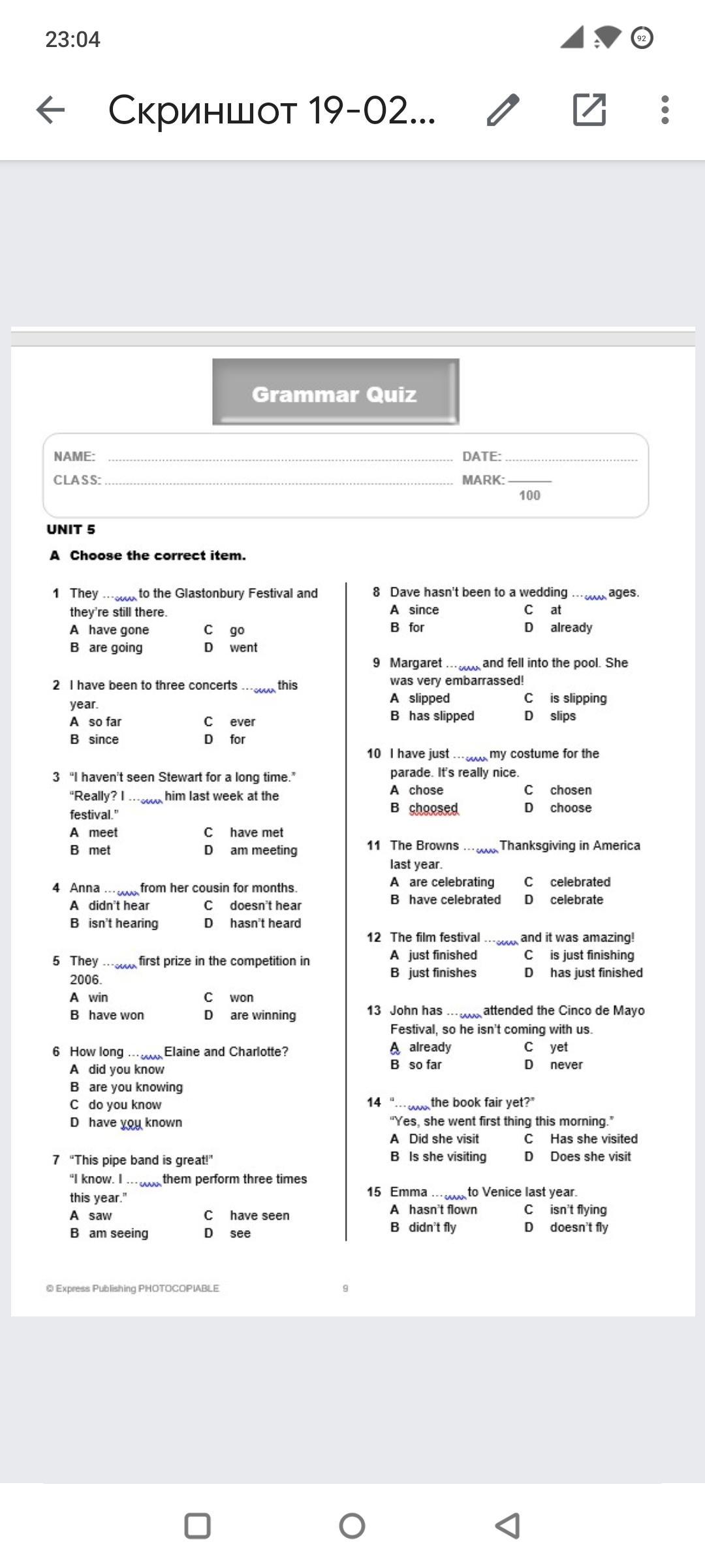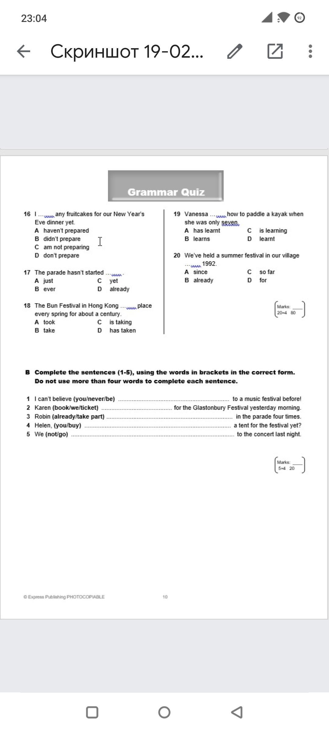 A haven't prepared B didn't prepare C am not preparing D don't prepare