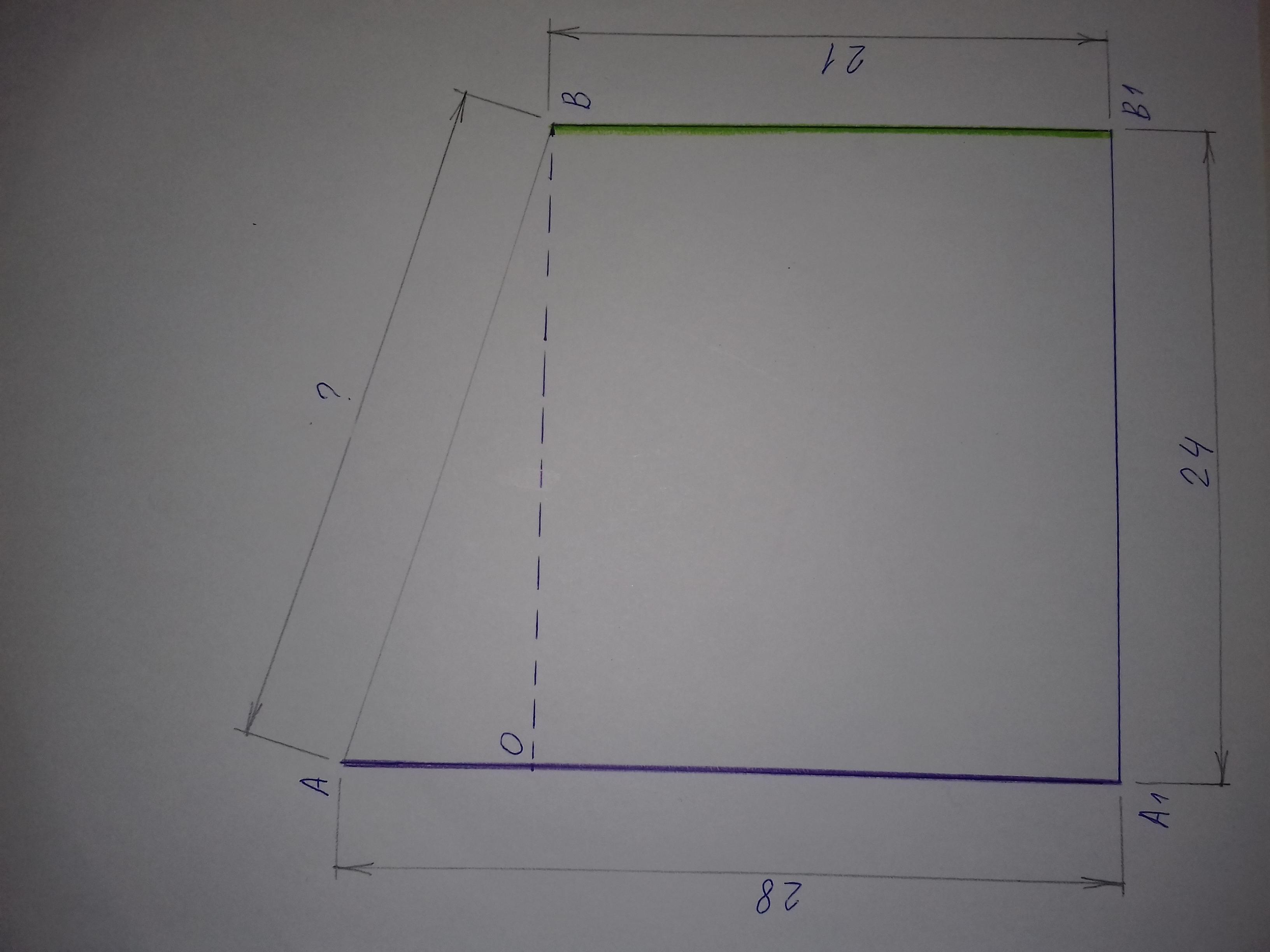 Розглянемо трикутник АОВ - він прямокутний ∠АОВ = 90°, катет ОВ = А1В1 = 24м., а катет АО = 7 м.