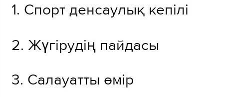 Спорт - денсаулық кепілі Спортпен айналысу денсаулыкты жаксартады. Спорттың ең қарапайым түрі - жүгіру. Күн сайын таңертең үйдің маңайында, саябақта жарты сагаттай жүгіруге болады. Егер жүгіруге дәрігер рұқсат етпесе, таңғы таза ауада серуендеп, түрлі жаттығулар жасауға болады. Білім алушылар мектептің дене шынықтыру үйірмелеріне тұрақты қатысулары керек. Онда арқанмен тартылады, секiредi, жүгіреді. Өйткені, олар спорттың денсаулыққа қаншалықты пайдасы бар екендігін, спортпен айналысудың адам өмірін ұзартатынын білуі шарт. 16 16/28 Еліміздің ертеңгi тiзгiнi - жастар, сондыктан да жас ұрпақтың дені сау болуы қажет. Сонда ғана өз елiмiздiн дамыған, алдынгы катардагы ел екендігін көре аламыз. Салауатты өмір сүрудің, тазалықты сақтаудың белгілі ережелерін білмейтін жан кемде-кем. Ол біздін мектеп бағдарламасына да енгiзiлген. Бірақ оған көпшілігіміз күнделікті өмірде аса мән бермейміз. Себебі, өз бойымызда қалыптасып қалған жалқаулық пен қомағайлықтың, ұйқышылдықтың күштілігі.