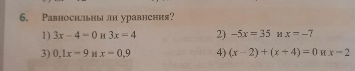 Объяснение:1)3х-4=0 и 3х=4;3х=0+4;3х=4;3х=4 и 3х=4-равносильны