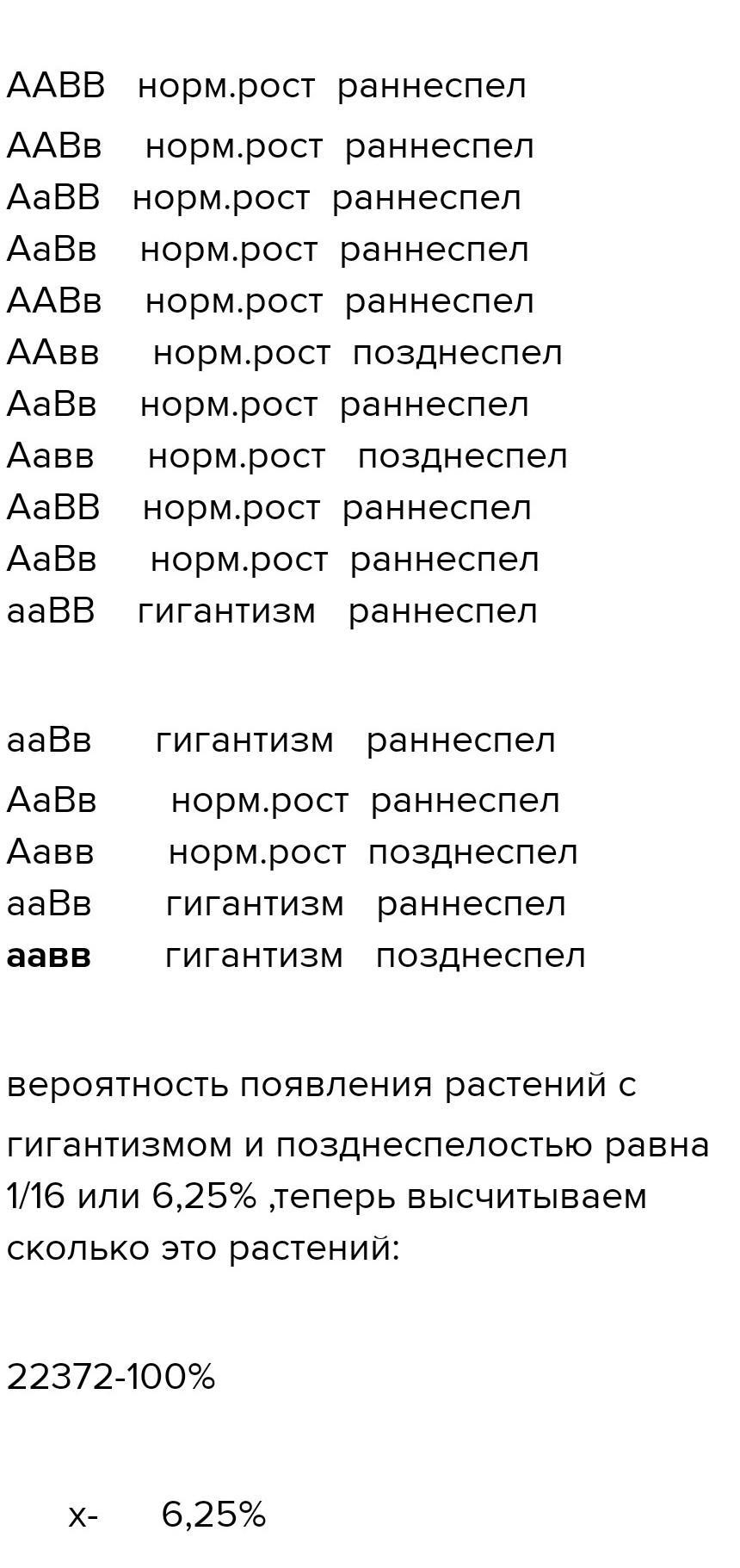 х=22372*6,25/100≈1398 (растений будут иметь гигиантский рост и позднеспелость)