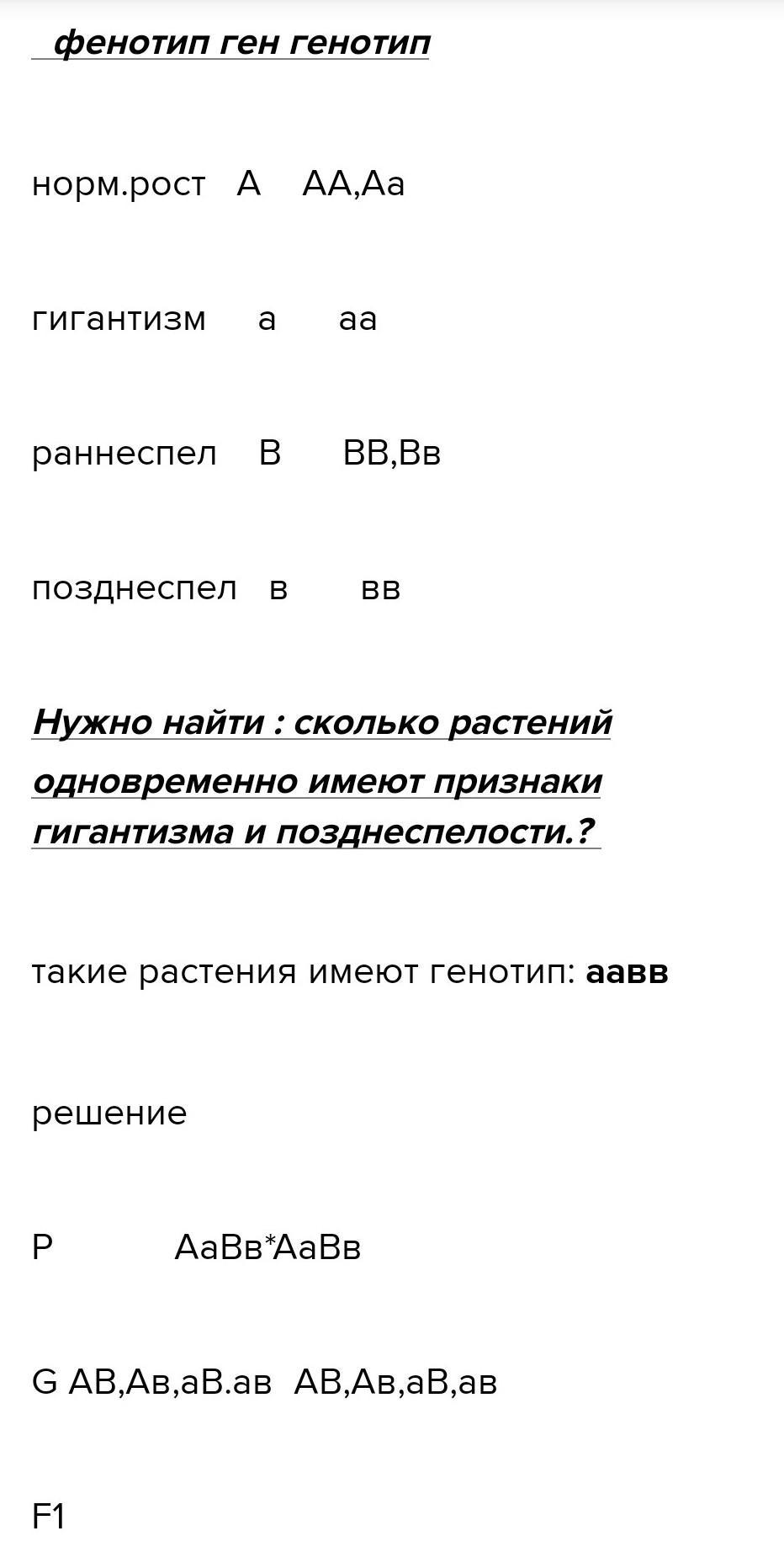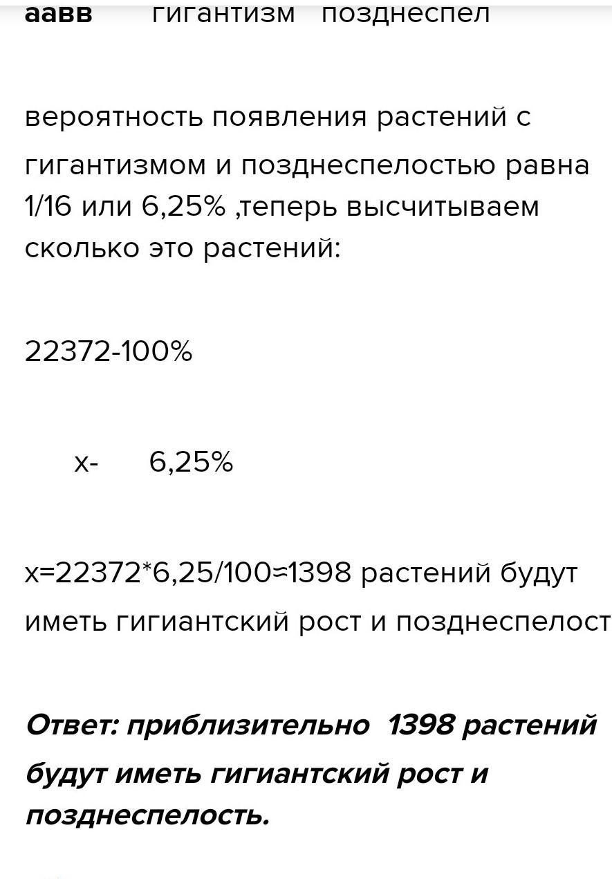 вероятность появления растений с гигантизмом и позднеспелостью равна 1/16 или 6,25% ,теперь высчитываем сколько это растений: