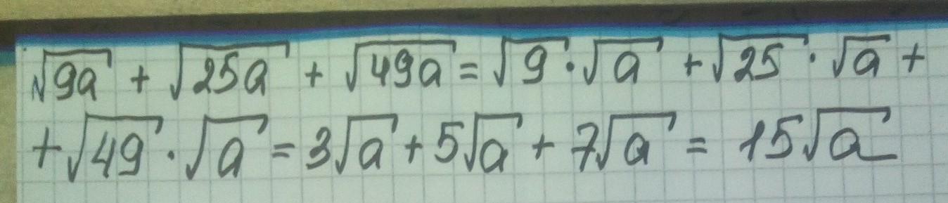 Спростіть вираз корінь9а+корінь25а+корінь49а