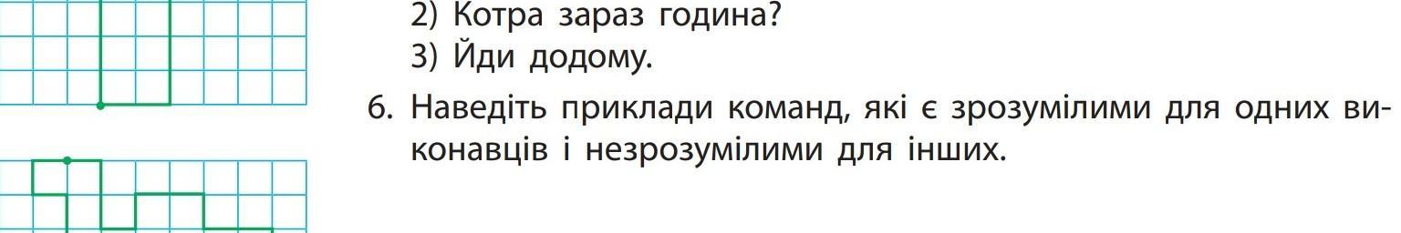 6. Наведіть приклади команд, які є зрозумілими для одних ви- конавцiв i незрозумілими для інших.
