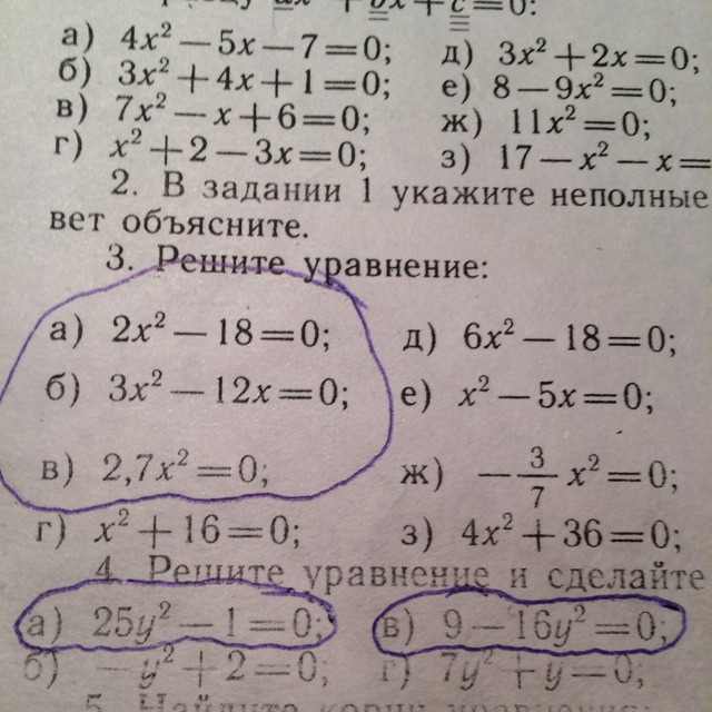 №а) б)3ײ-12×=0 в)2,7ײ=0 №а)25y²-1=0 в)9-16y²=0