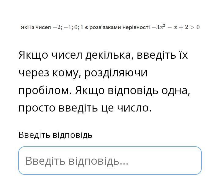 a< 0 ветви параболы направлены вниз,поэтому решением неравенства яв-ся промежуток (-1; 2/3) ,потому что он расположен выше оси ОХ.Т.к неравенство строгое,то -1 не входит в промежуток.Из данных чисел решение неравенства будет только 0.