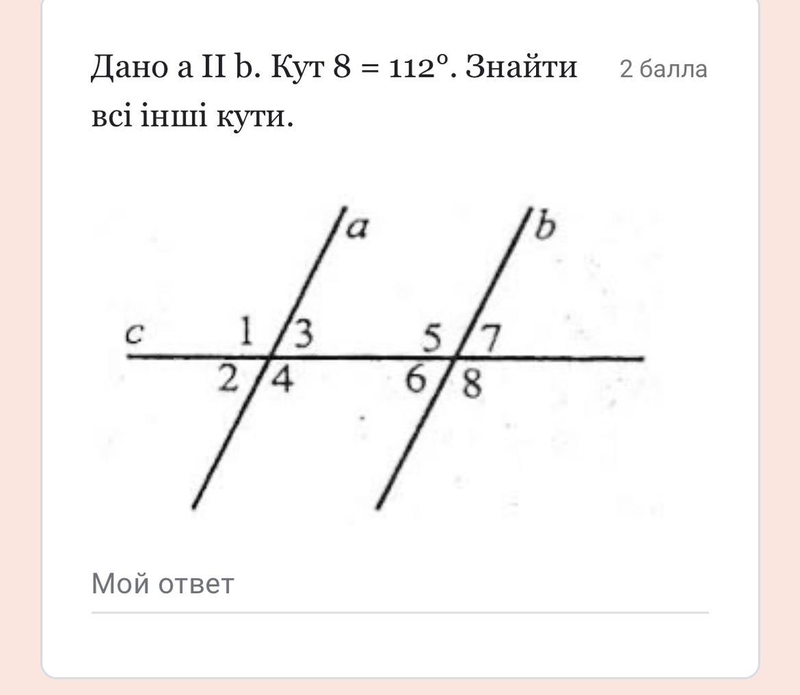 по свойствам параллельных прямых углы 2,3,6,7 равны и углы 1,4,5,8 тоже равны