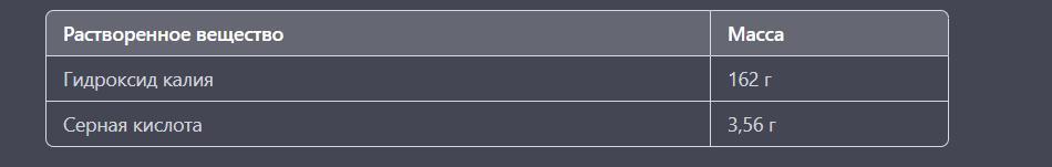 Таким образом, для полной нейтрализации 162 г гидроксида калия необходимо 3,56 г раствора серной кислоты с массовой долей растворенного вещества 13%.