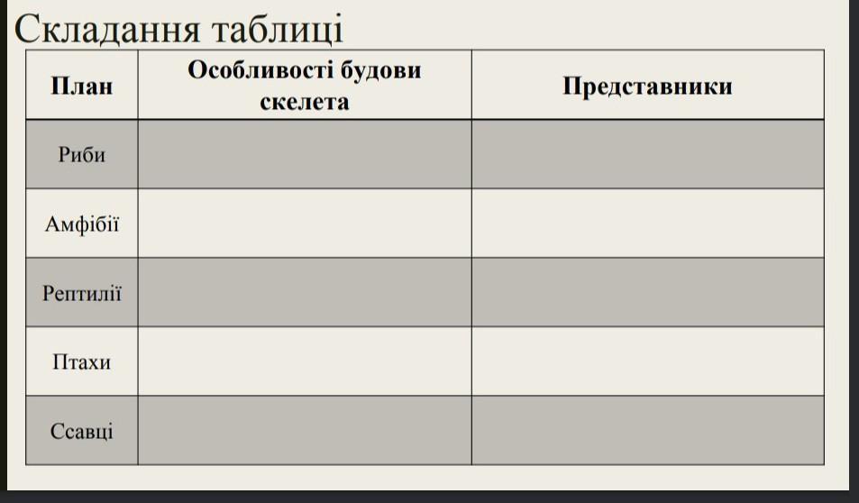 • заповнити таблицю потрібно
