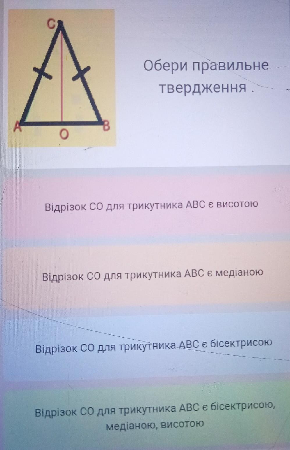 Так как треугольник АВС равнобедренный то медиана будет делить треугольник пополам, так же как и биссектриса, а высота так как будет 90°