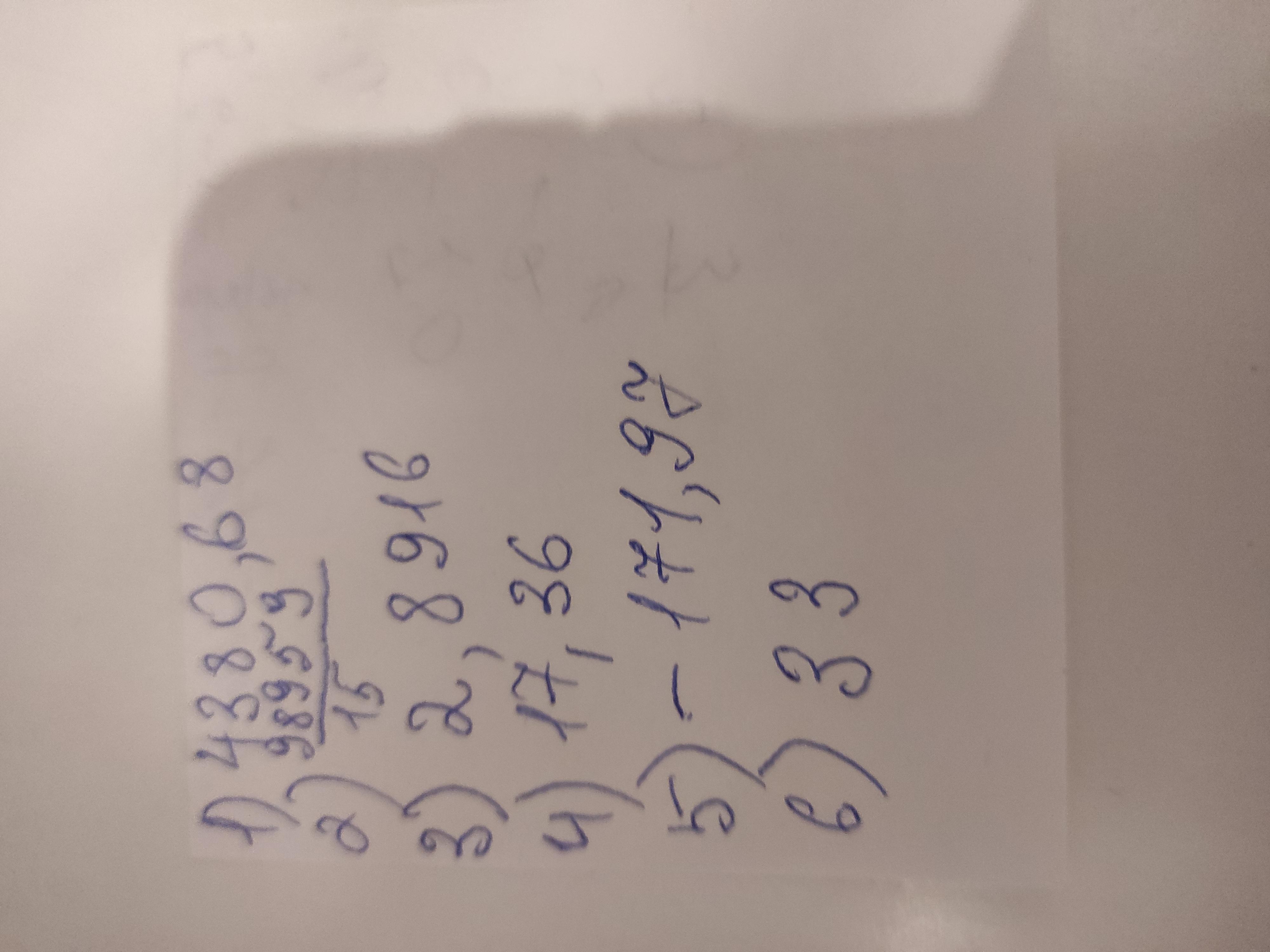 1) 4,37 1,9 + 8,78; 3) 6,88 1,6 - 3,99; 5) 85,8 0,33 - 258,1; 2) 7,91 6,72 : 1,2; 4) 10,05 + 7,31 : 1,7; 6) 1,968: 0,41 + 28,2. -