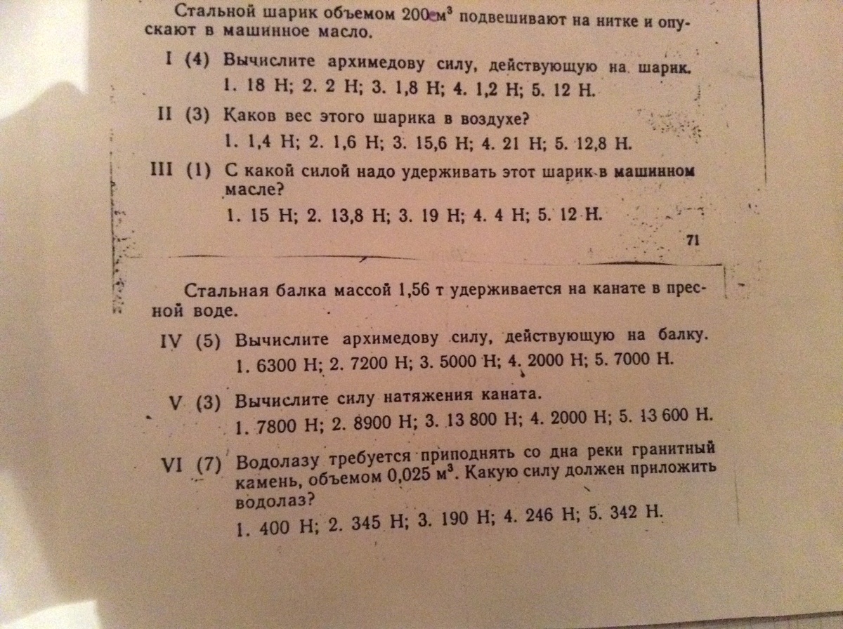 b)Fнатяжения=Fтяж-Fa=15600-2000=13600H