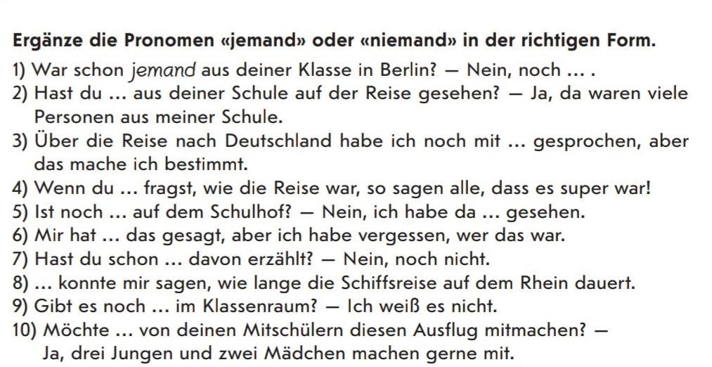 2. Hast du jamanden aus deiner Schuhle auf der Reise gesehen? - Ja, da waren viele Personen aus meiner Schuhle.