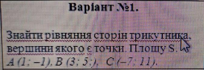 Знайти рівняння сторін трикутника. Вершини якого є точки. Площу S.