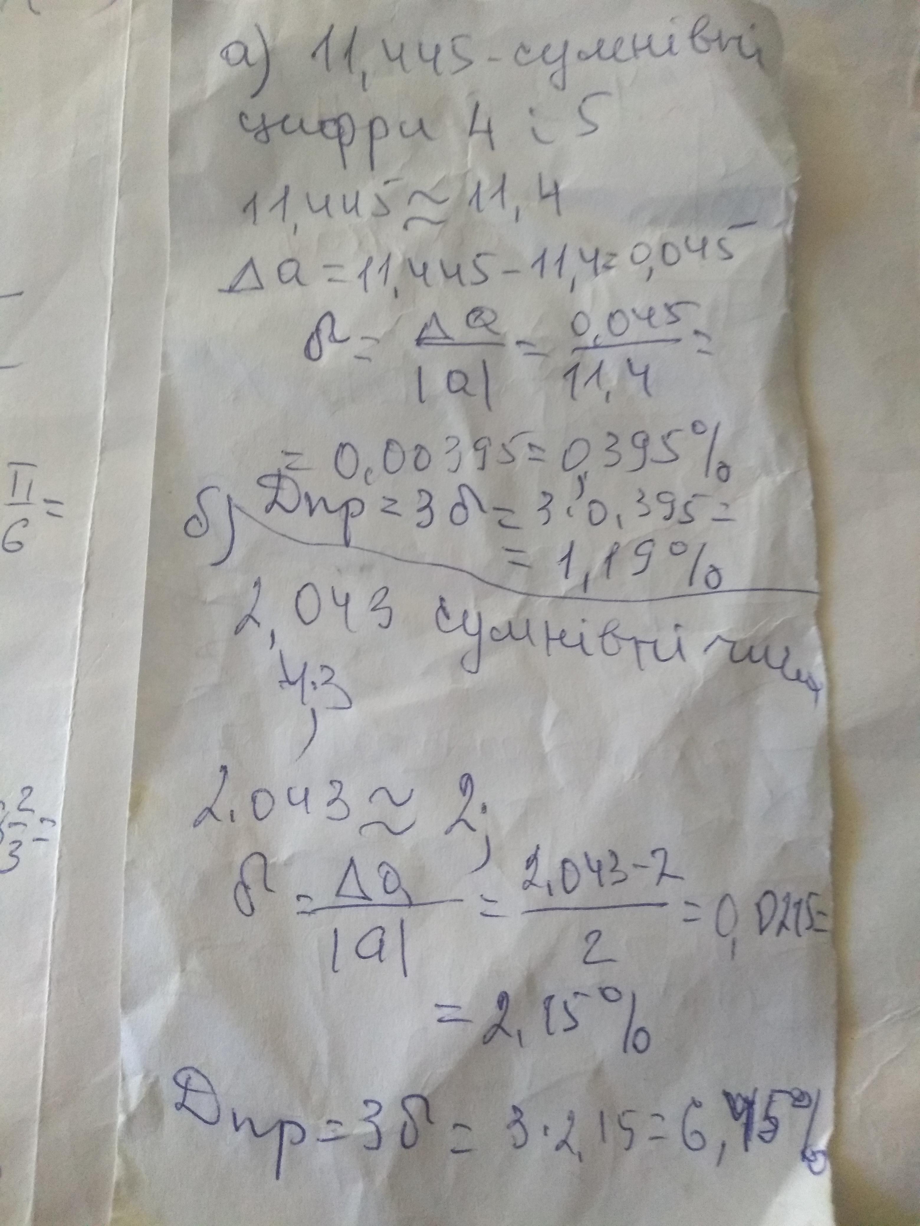 Округлити сумнівні цифри числа до десятих i знайти граничні та відносні похибки: