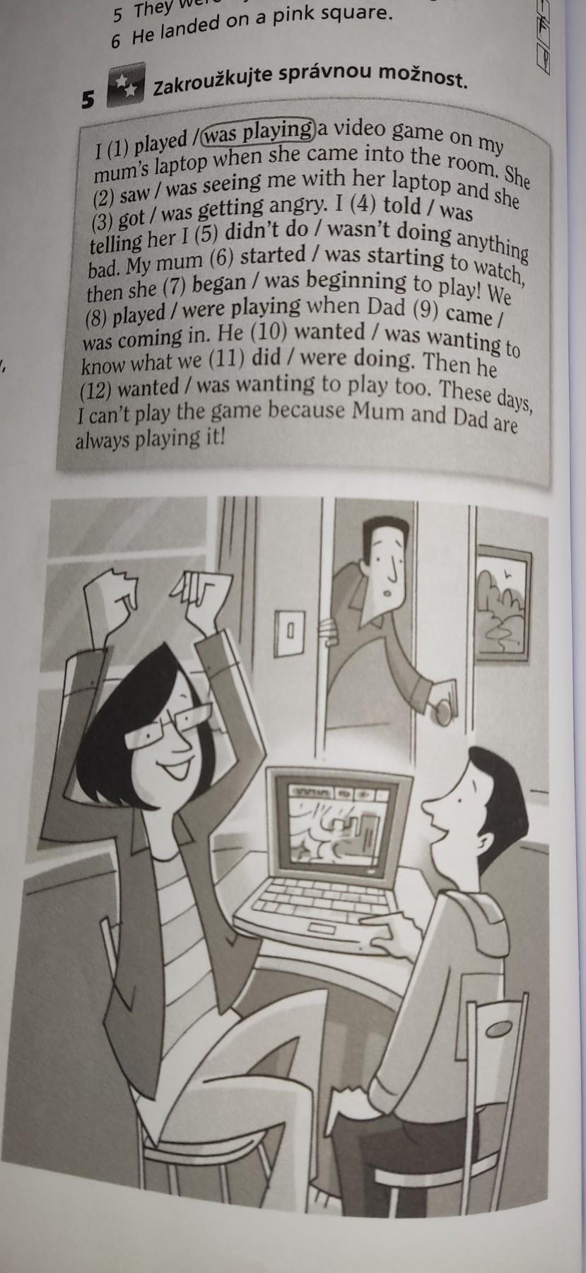 2)saw 3)got angry 4)told 5)wasn't doing 6)started watching 7)began 8)were playing 9)came 10)wanted 11)were doing 12)wanted