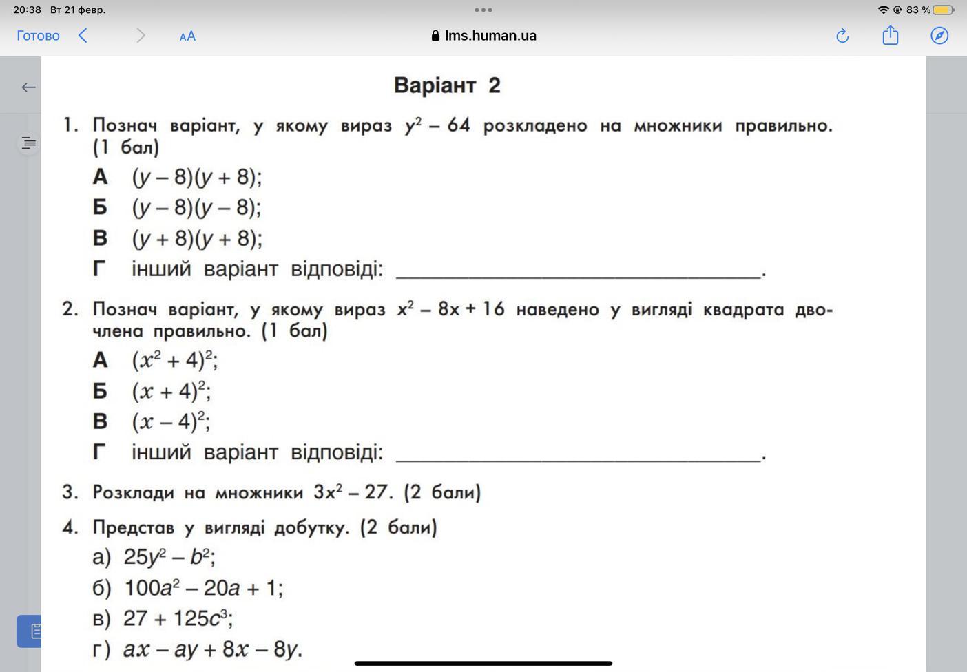 4. а) 25у²-b²=(5y)²-b²=(5y-b)(5y+b)