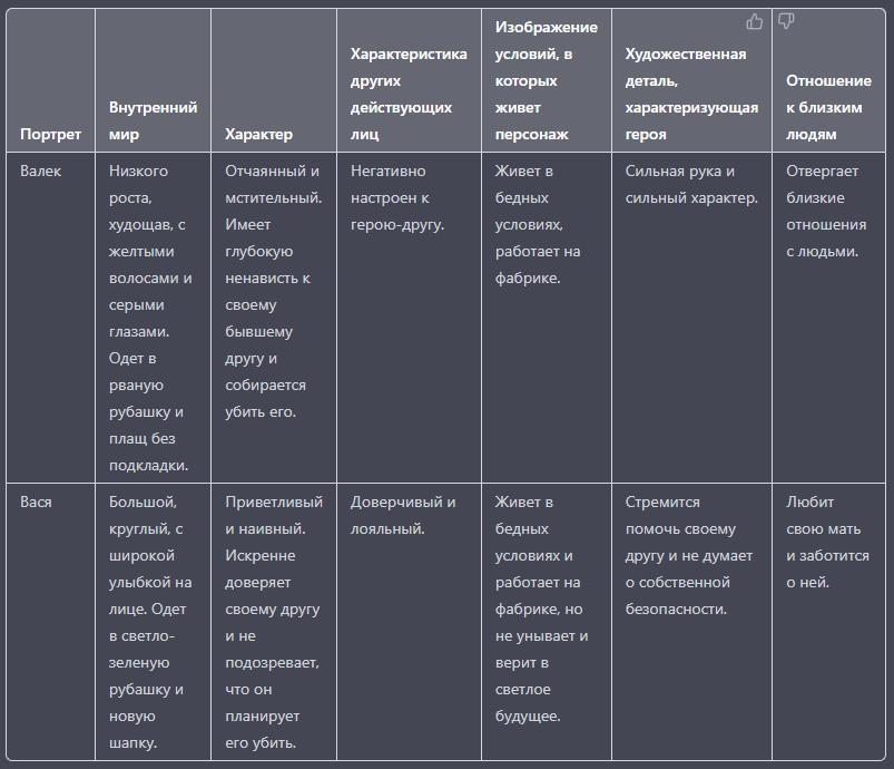 Составить характеристику Валека и Васи (в виде таблицы, см.файл).