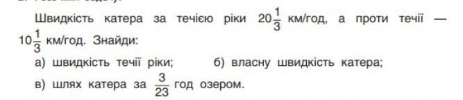 2) 20 1/3 - 5 = 15 1/3 (км/ч) - собственная скорость катера