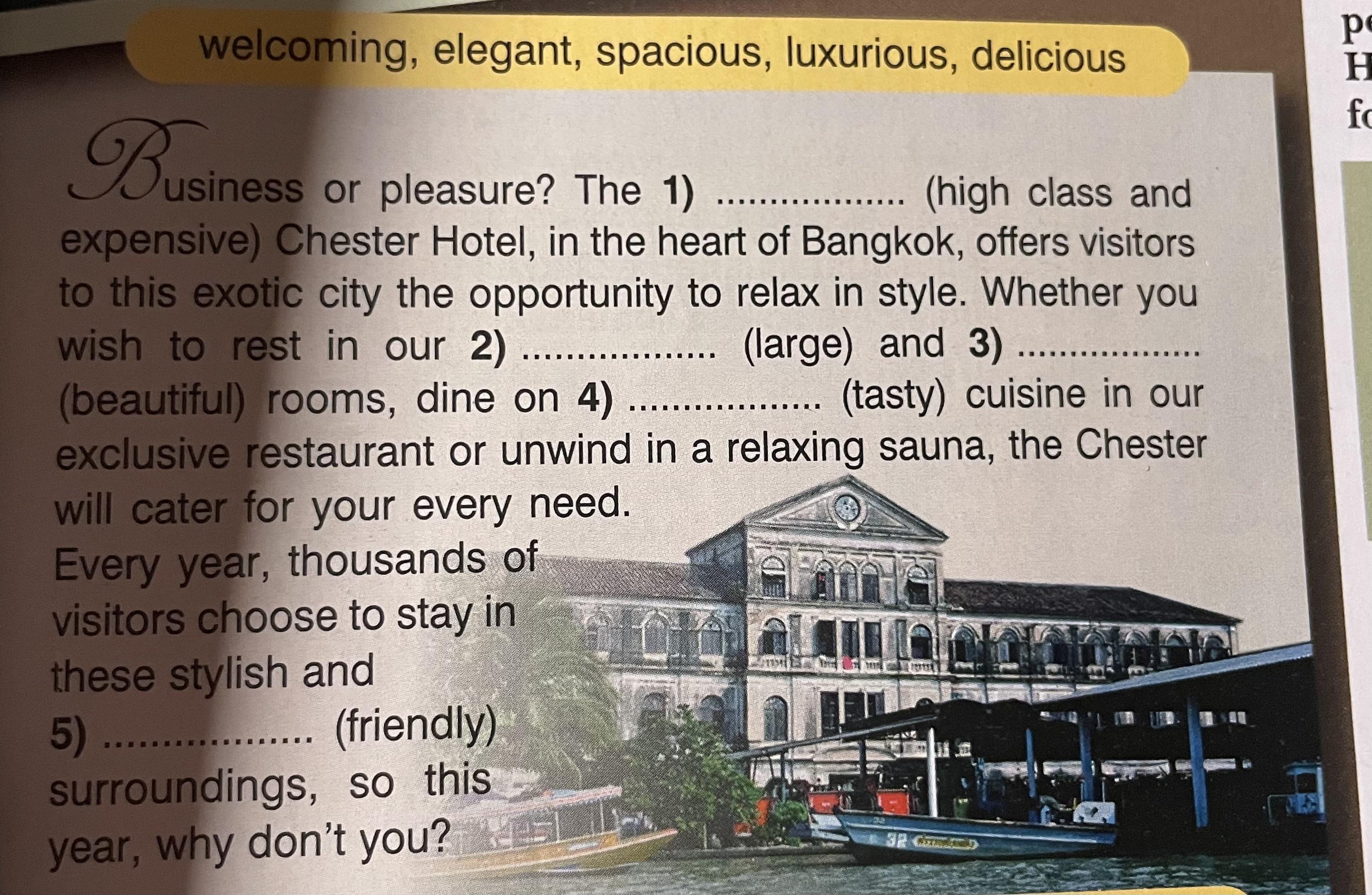 Read the advertisements and replace the words in brackets with the words from the lists.