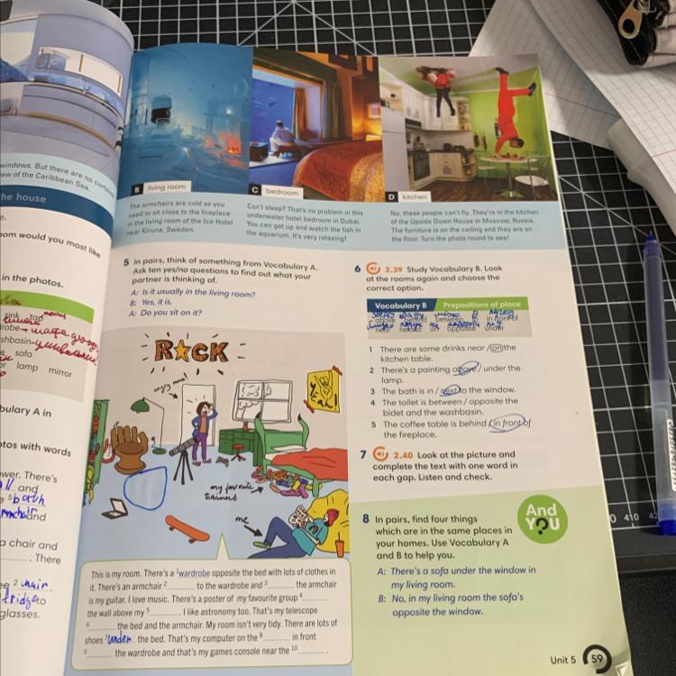 Write 10 sentences, use the words from ex 2, 6 (SB p 58-59) . Start with There is, There are.