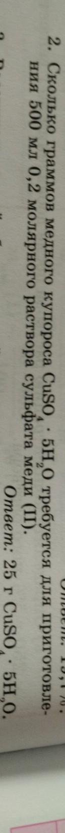 Ответ: 19,7%. . 2. Сколько граммов медного купороса CuSO - 5H, О требуется для приготовле ния 500 мл 0,2 молярного раствора сульфата меди (II). Ответ: 25 г CuSO4 5H2O. 3. Рассчитать, какой объем соляной кноло моноЎ 0 0к мо /T TO .
