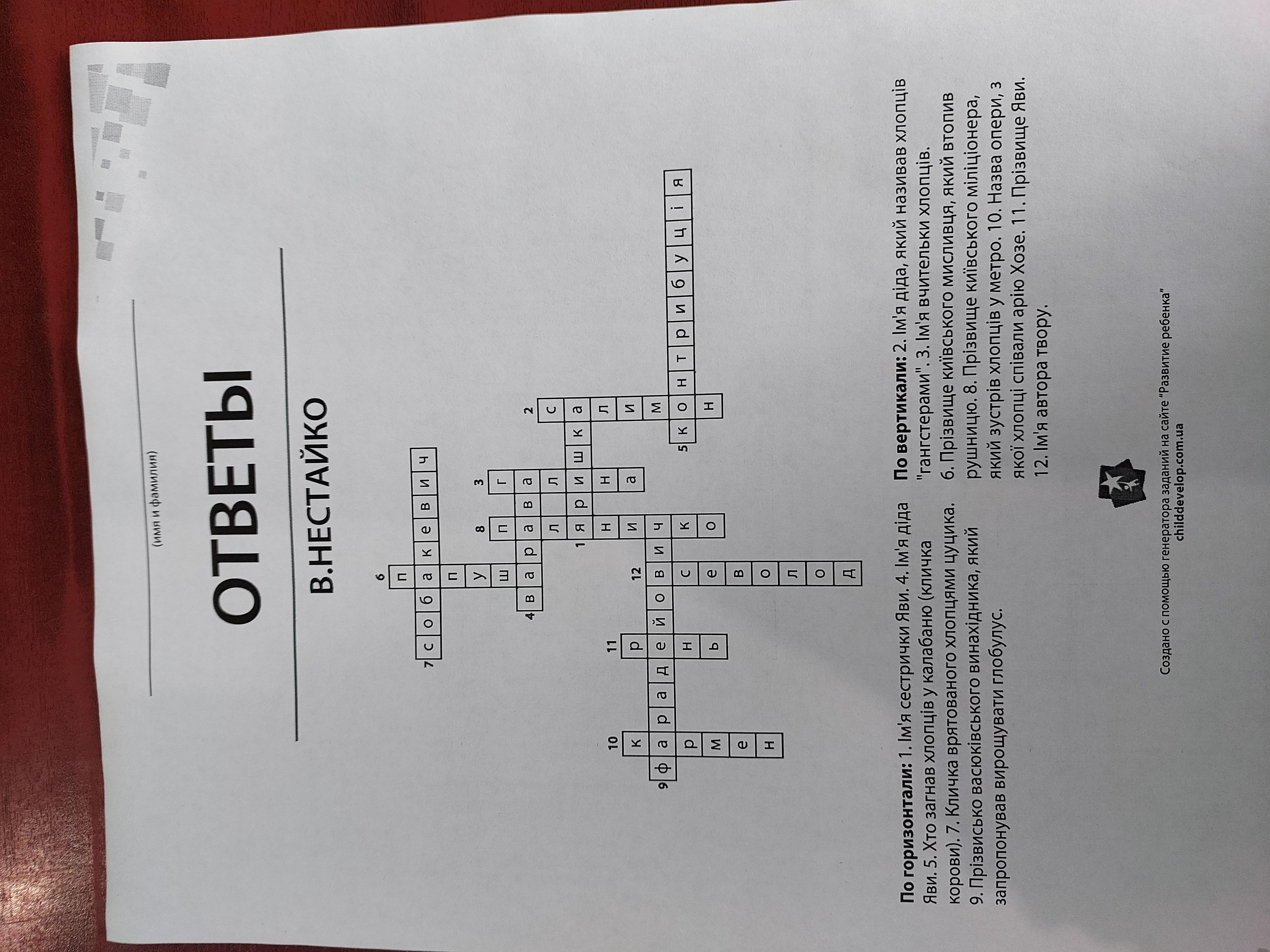 Скласти кросворд до повісті "Тореодори з Васюківки" на 10-12 запитань