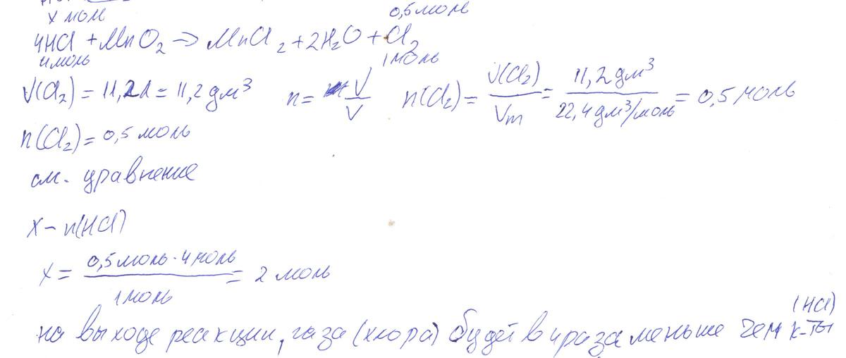 Какое количество соляной кислоты потребуется для получения 11,2 л хлора?? Объясните пожалуйста подробнее))