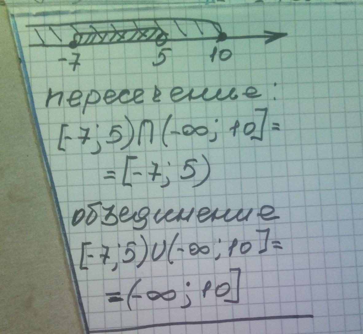Изоброазите на кординатной прямой и запишите пересичение и обьедение числовых прямижуток [-7,5)и(-●●;10];