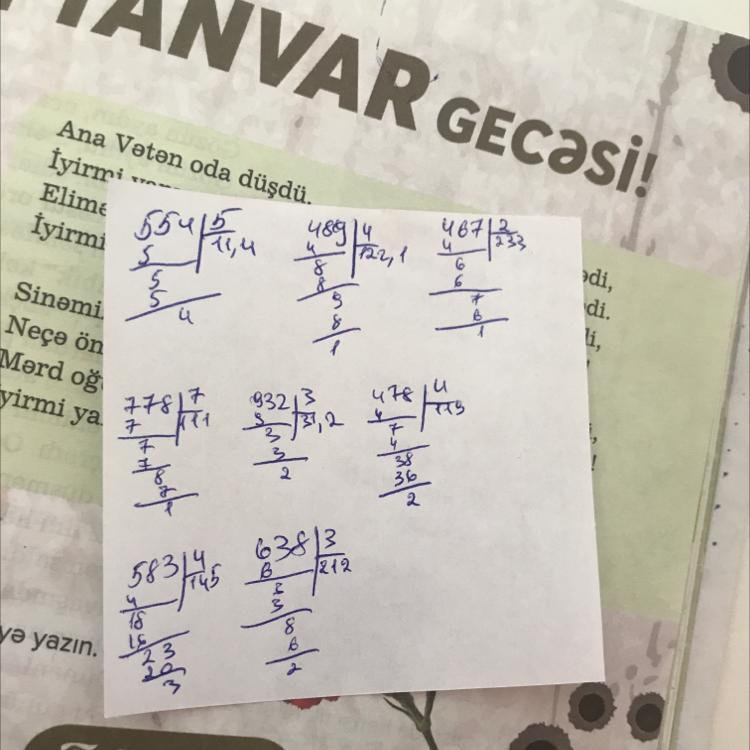 3. Выполни деление с остатком. Проверь вычисления с проверкой в столбик a) 554:5 489: 4 6) 467:2 778:7 932:3 478:4 583: 4 638:3