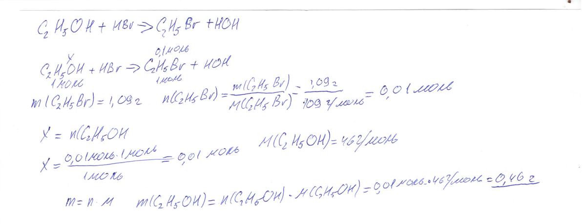 етанол прореагував із гідроген бромідом і утворися бромоетан масою 1,09 г .