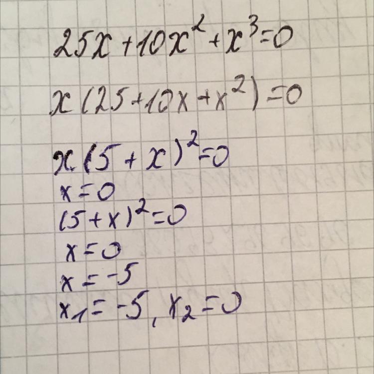 Таким чином, рівняння має три розв'язки: x = 0, x = -5 та x = -25.