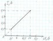 Сила струму через резистор опором 35 Ом змінюється від 0,1 А до 0,4 А. В яких межах змінюється напруга на резисторі? Побудуйте графік залежності сили струму від напруги.