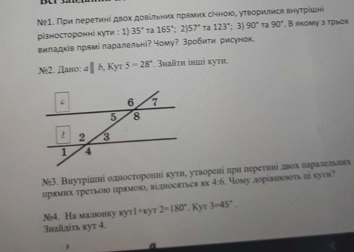 щоб знайти кут 8, необхідно (180° - розгорнутий кут) 180°-28°=152°, тоді <8=6=4=2=152°