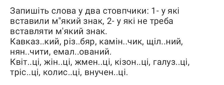 2: камінчик, квітці, жінці, галузці, трісці, колисці.