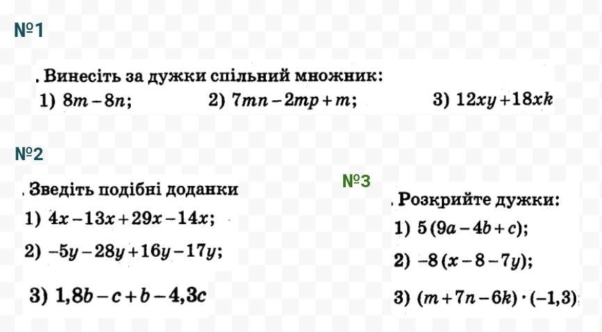 1)8×(m-n) 2)m×(7n-2p+m). 3)x×(12y+18k)