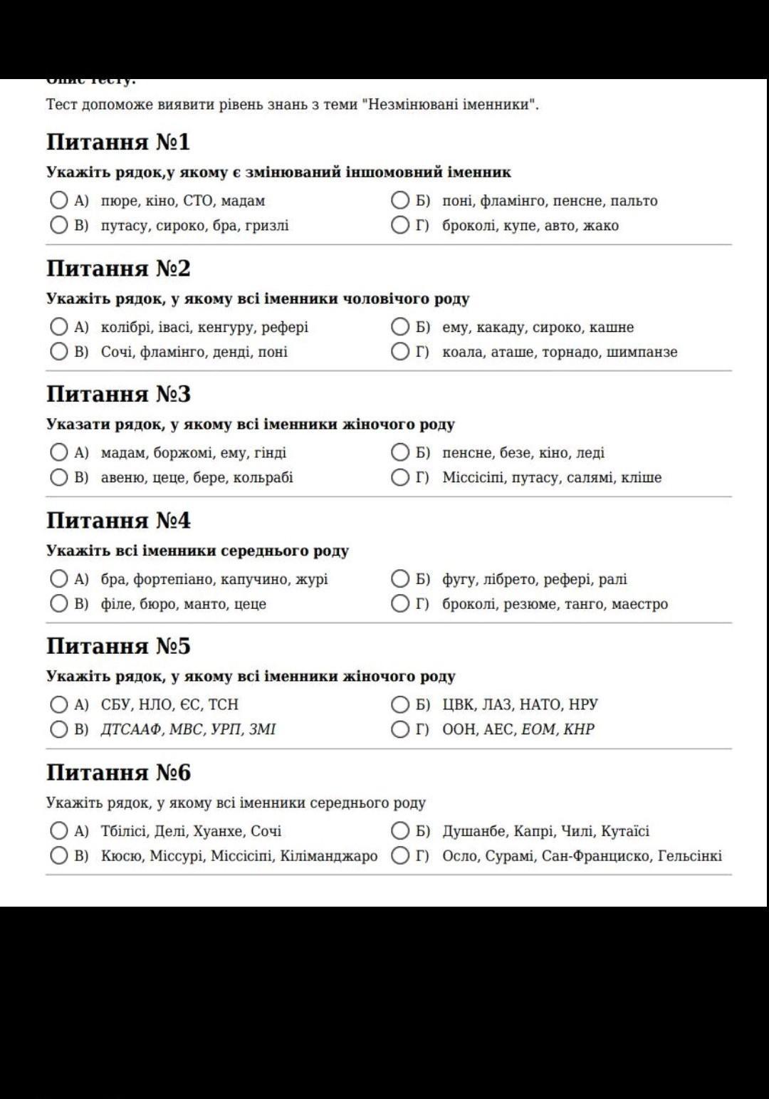 Відповідь: 1)а 2)г 3)а 4)в 5)в 6)г