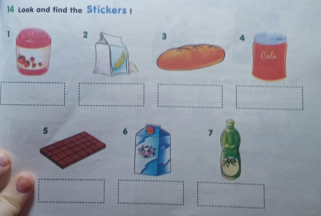 a packet of 14 Look and find the Stickers ! 5 2 choc 0. 7 4 Cola Cover pages 62-63 after page 91 of the Pupil's Book. 63 срочноооо