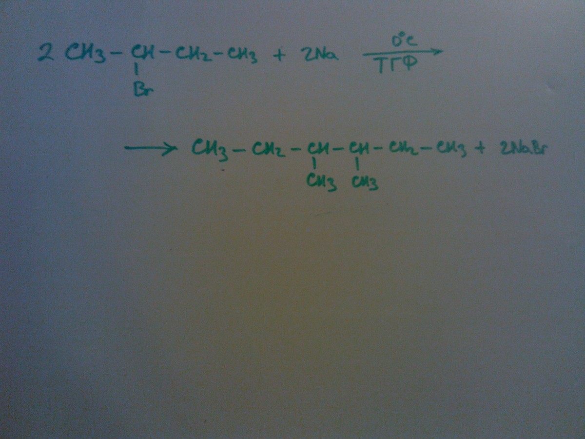 2(2-бромбутан) + 2Na = 3,4-диметилгексан + 2NaBr