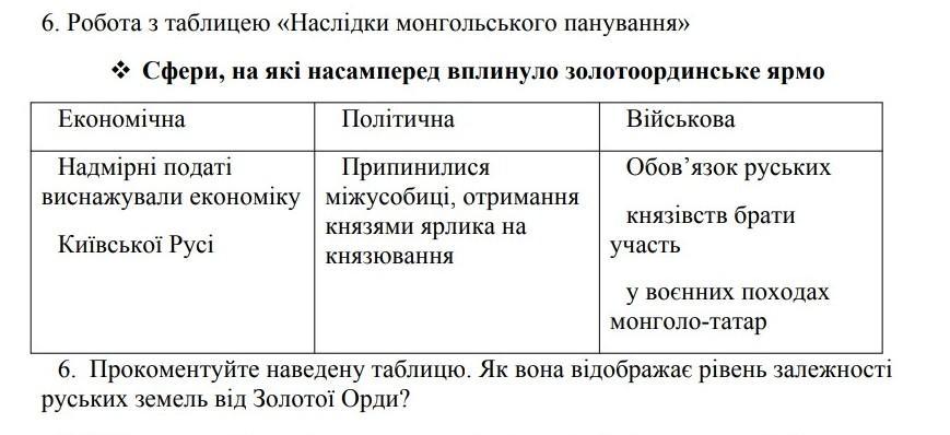 Руськи землі дуже залежали від золотої Орди бо тепер вони не мали права вільно жити в економічному плані вони залежали від орди тому що мали сплачювати великі податки в політичному стані вони не мали права панувати на своїх землях тільки золота орда та якщо монголо татари йшли воювати а якщо ні то смерть