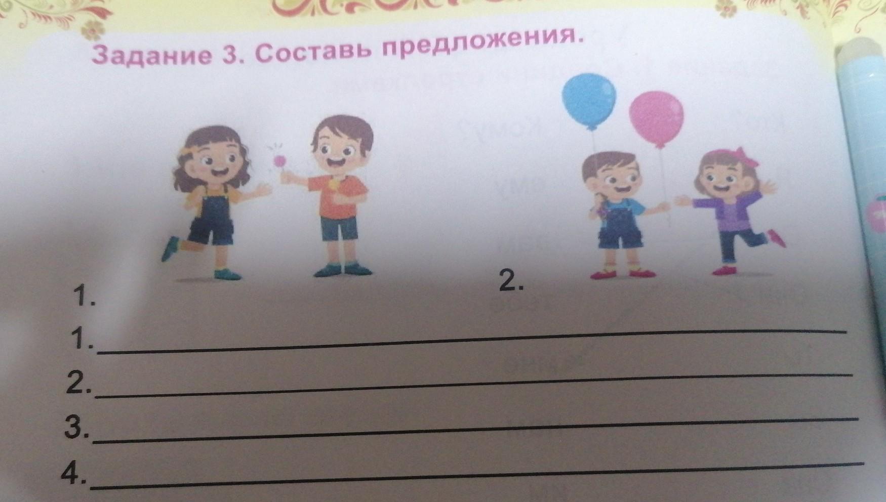 3. Мальчик предложил девочке леденец. 4. Девочка захотела поделиться шариком, потому что у неё их было два.