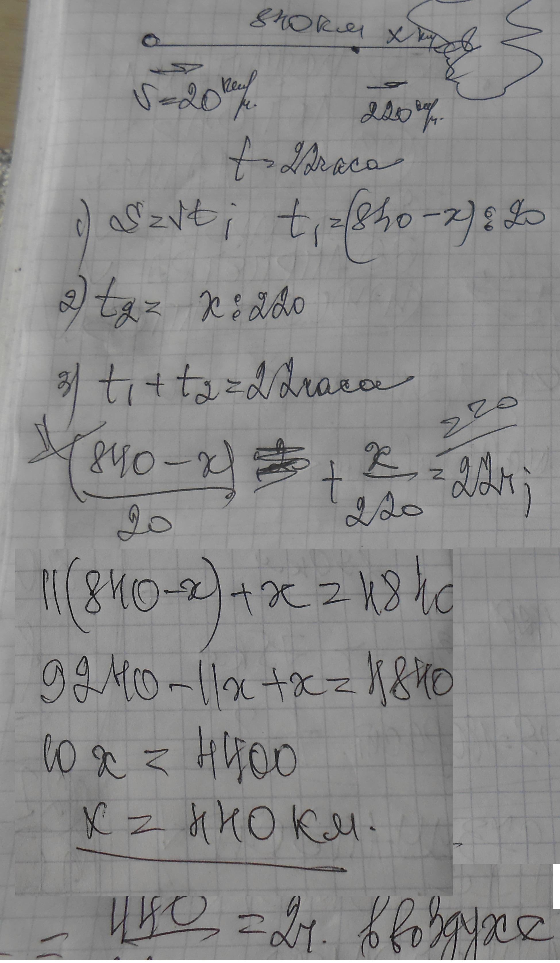 Ледокол вышел из порта к острову, который отстоит от порта на расстоянии 840 км, и шел со скоростью 20 км/ч. На некотором расстоянии от места назначения с ледокола взлетел вертолет и полетел на остров со скоростью 220 км/ч. Сколько времени вертолет был в воздухе, если известно, что со времени выхода ледокола из порта до посадки на острове его пилот находился в пути 22 ч?