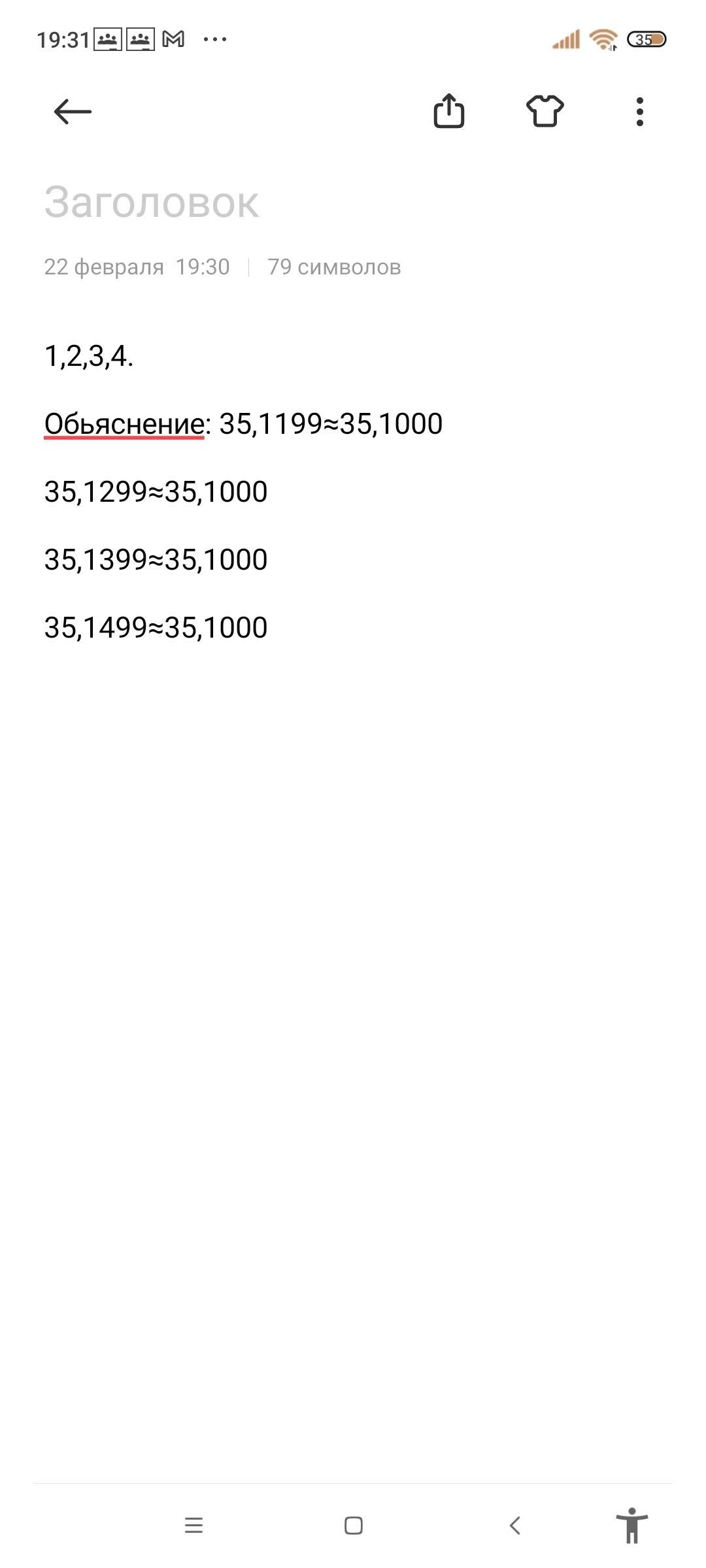 Які цифри можна підставити замість зірочки, щоб округлення 35,1*99 ≈ 35,1 було виконано правильно ? ххххххххеееееел