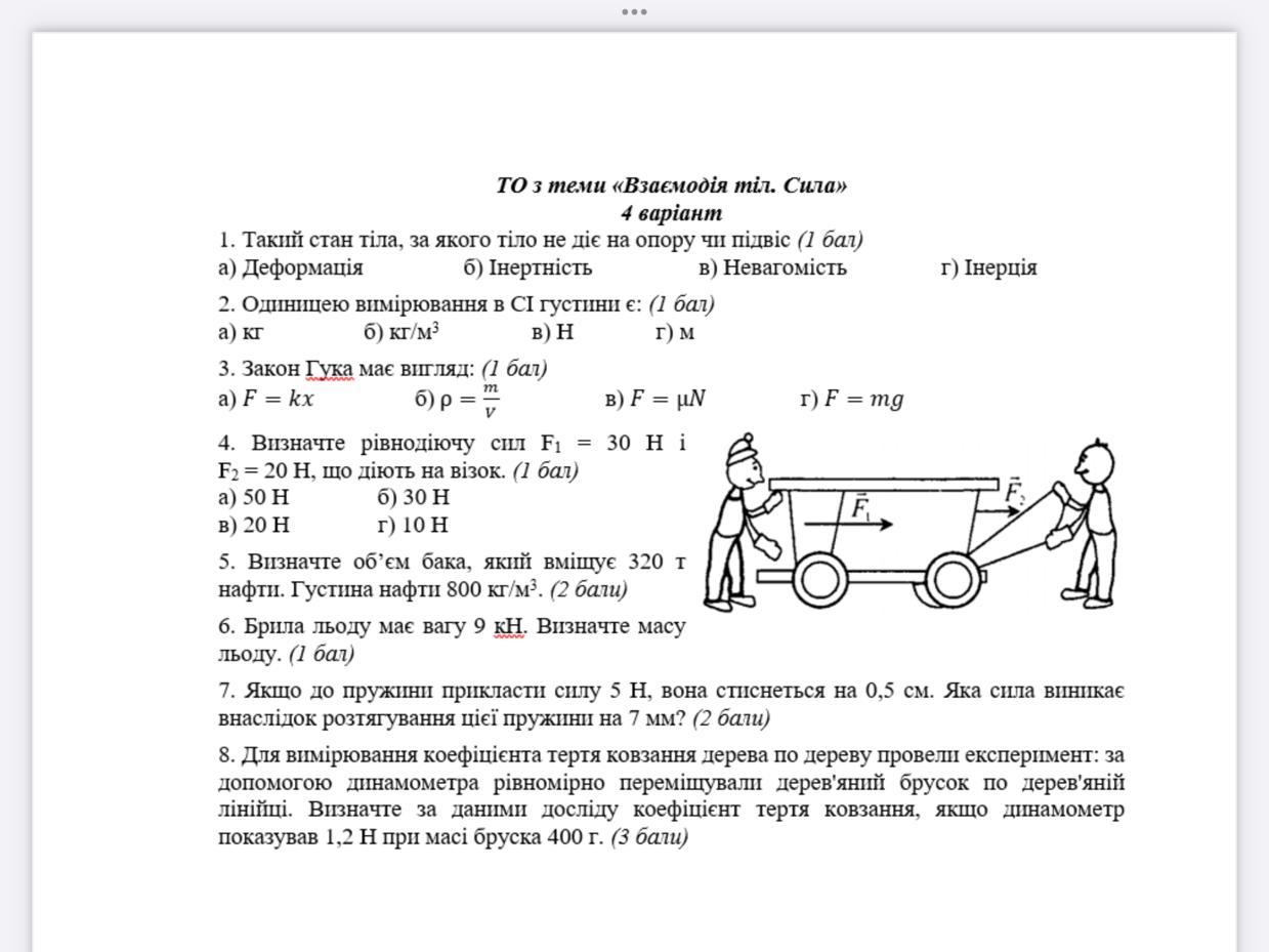 Маса бруска дорівнює 400г, а в силі ваги визначається за формулою: