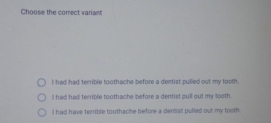 I had had terrible toothache before a dentist pulled out my tooth.