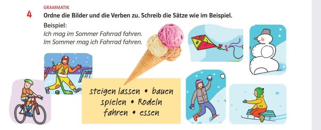 4. Ich mag im Winter Rodeln fahren.