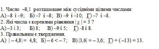3. А. Модулем от -4.8 будет числа 4.8. остальные не подходят (Б -6>-7, В |3.6|=3.6, Г +(-13)=-13